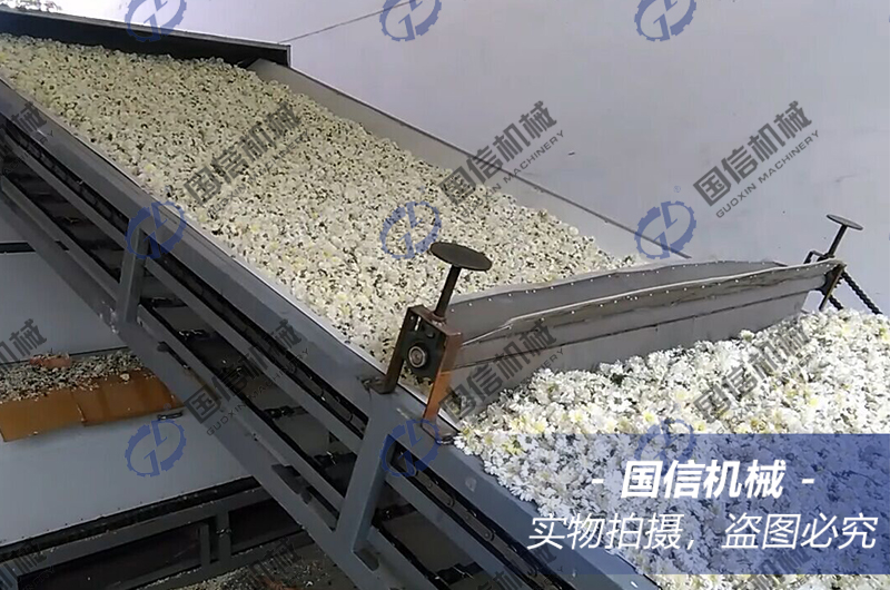 導讀:對剛采摘的懷菊花我們用無硫烘干法,設備采用網帶式烘干機進行烘干,通過自下而上穿過網帶及物料層的熱氣流使菊花花朵溫度升高,均勻干燥。無硫烘干法有效避免硫磺污染,是國家大力提倡產業,市場前景廣闊。