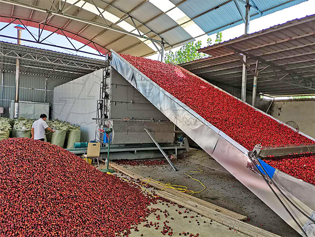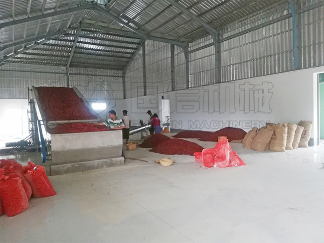 導(dǎo)讀:大型網(wǎng)帶式辣椒連續(xù)式熱風(fēng)干燥設(shè)備,可根據(jù)生產(chǎn)需要對(duì)網(wǎng)帶運(yùn)行速度、溫度和濕度進(jìn)行調(diào)節(jié),以滿足對(duì)不同含水率、不同品種的辣椒進(jìn)行烘干處理。