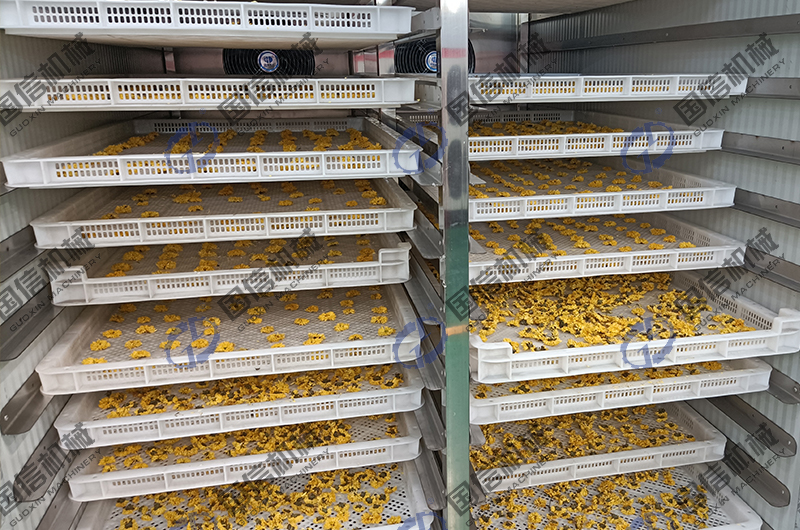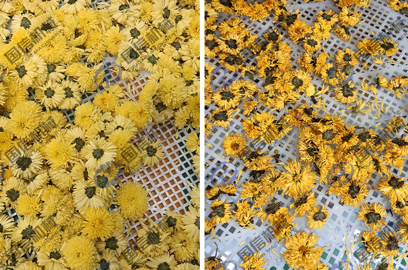導讀:菊花烘干機已經成為了菊花生產加工的重要設備,可對剛采摘的新鮮菊花進行快速高效的烘干加工,也可以對長期貯藏的菊花進行干燥除潮。菊花烘干房采用的是靜態烘干模式,通過熱源裝置,讓烘干房內的溫度升高到制定值,對擺放在房內的菊花進行干制。烘干房的智能化控制系統,可以對溫度和濕度進行精準控制,以達到菊花烘干目的。
