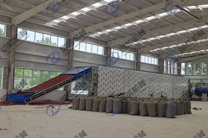 導讀:近期,錦州義縣的客戶在我公司購買的大型辣椒烘干機已經投入使用,并開始盈利。目前,設備運行順暢并得到客戶的一致好評,以下是工作人員拍攝的辣椒烘干加工生產線運行現場圖片。