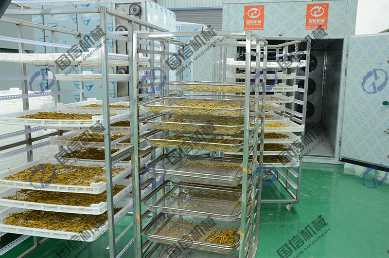 使用我們國信機械廠家的黃花菜烘干機,只需設置好烘干工藝曲線即可,整個過程為自動化運行,節約了人力物力。智能精準的控制烘箱內部的溫濕度,保證了烘干品質。