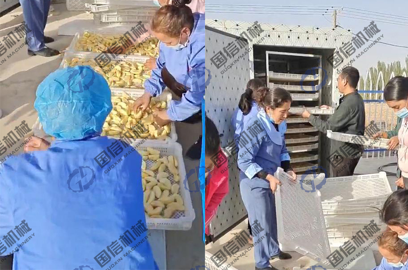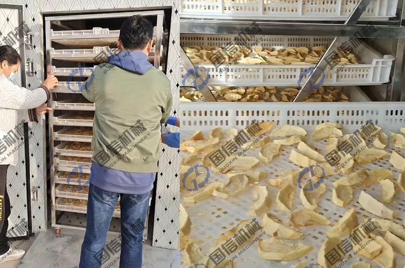 中小型空氣能熱泵烘干機其實是目前主流的果蔬烘干設備,可日烘干處理果蔬兩百公斤到3噸左右的產量需求,采用的是靜態烘干模式,主要是由提供穩定熱源的熱泵主機、高保溫性能的聚氨酯板房、耐高溫高濕環境的軸流風機和精致的推車托盤組成,工作原理是:通過將切分后的果蔬均勻平鋪到托盤,放置在推車上后,送進烘干房,烘干房的熱源系統,熱泵烘干機會提供穩定熱源,然后在循環風機的作用下,對烘干房內的果蔬片、條、粒等進行烘干。熱泵烘干機產生的是純凈的熱風,烘干房內部也是密閉的環境,因此整個烘干環境不會使果蔬受到任何的外界污染物侵入,烘干品質非常可靠。