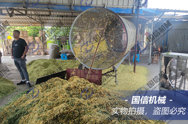 被烘干的物料:金銀花、菊花等等不同的物料。