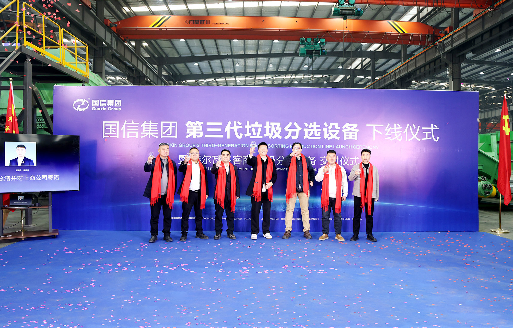 2025年1月29日,國信集團第三代智能垃圾分選設備下線儀式暨首批產品交貨儀式在集團智能制造基地隆重舉行。本次活動著國信在固廢處理裝備領域的技術創新與產業化應用邁上了全新臺階,也再次印證了其“研發一代、交付一代”的堅實承諾與高效執行力。