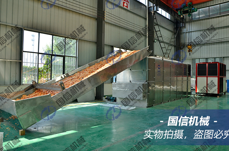 流水線(xiàn)空氣能紅薯片烘干的工藝如下: