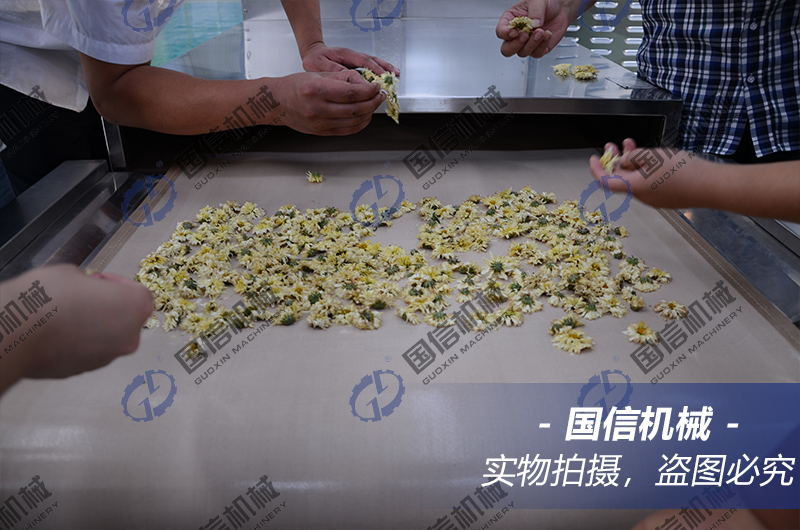 微波菊花烘干機是針對花茶產品烘干、殺青的新領域。該設備可用于:杭白菊、胎菊、黃金菊、貢菊、小野菊、野金菊等等。微波菊花烘干機原理是微波能直接作用于物料分子,使分子相互之間每秒產生24億5千萬次的震蕩,分子之間互相摩擦產生自熱,從而達到加熱干燥的作用。同時也可用于對菊花進行殺青作用。經由微波殺青烘干后的菊花,色澤鮮艷均勻、外形美觀。